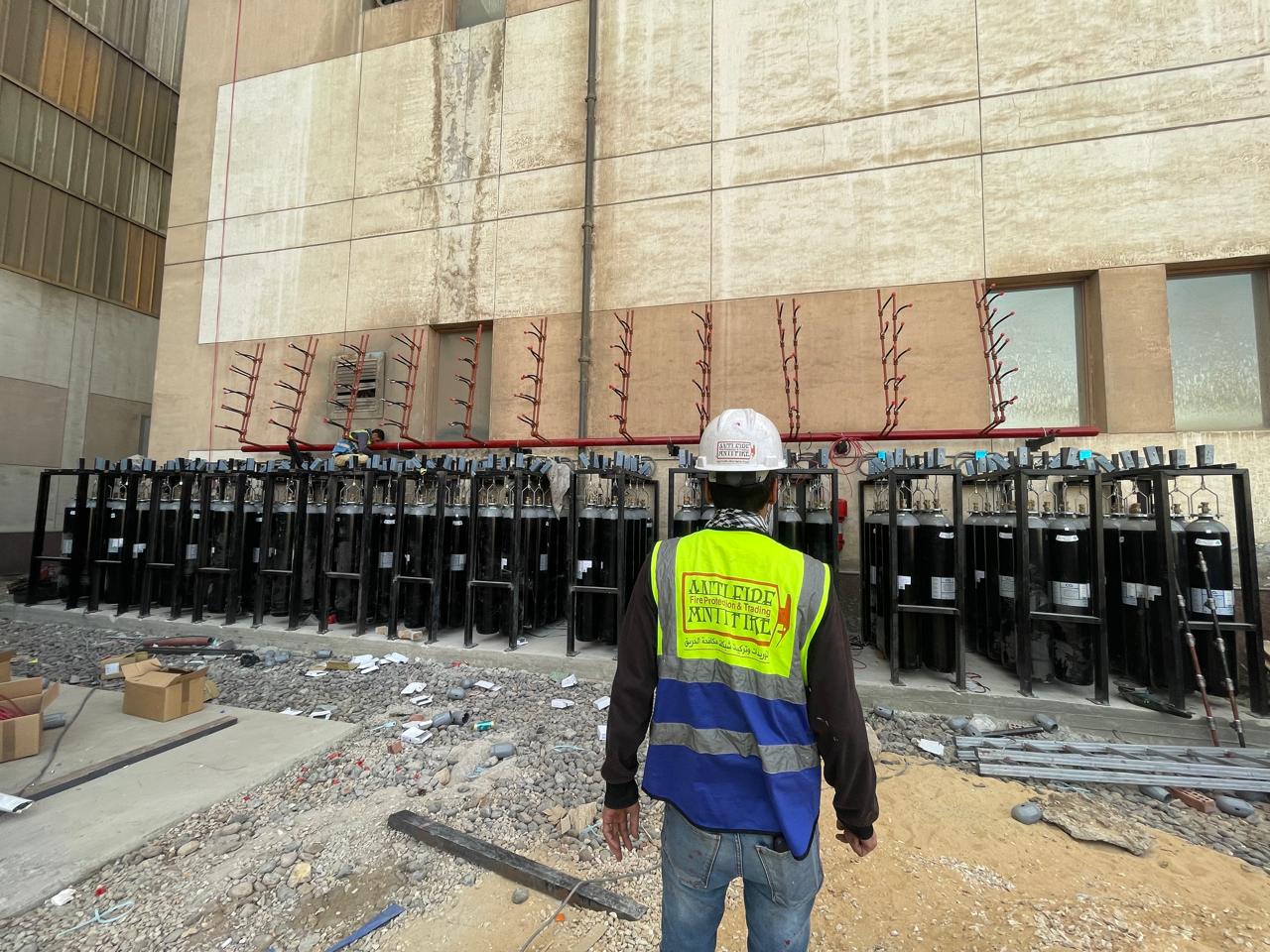تدريب فرق الأمن والسلامة على استخدام أنظمة الإطفاء.